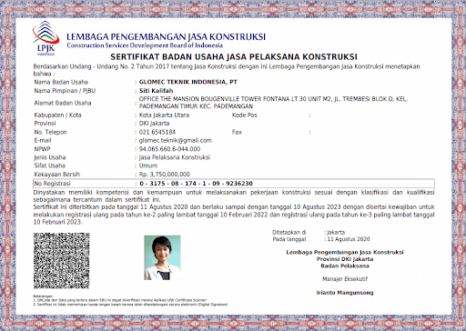 Glomec Teknik Indonesia merupakan perusahaan dalam bentuk Perseroan Terbatas yang awal berdiri di Jakarta pada tanggal 09 Januari 2020 dengan nama Enerco Teknik Indonesia yang kemudian terjadi perubahan anggaran dasar pada tanggal 15 Juni 2020. Bergerak di bidang perdagangan barang dan jasa konstruksi mekanikal, elektrikal, dan plambing.